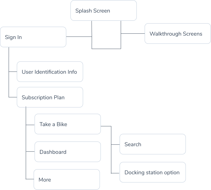 Combining through our research and brainstorming the different things people do before, during, and after riding allowed me to come up with a broad set of tasks–quickly. I categorized and segmented the tasks into behavioral affinities and aligned content and features. This gave me a way to visualize what existing functionality and content would be useful, what tasks needed support, what opportunities were available to innovate, and also what could be discarded from the existing app.