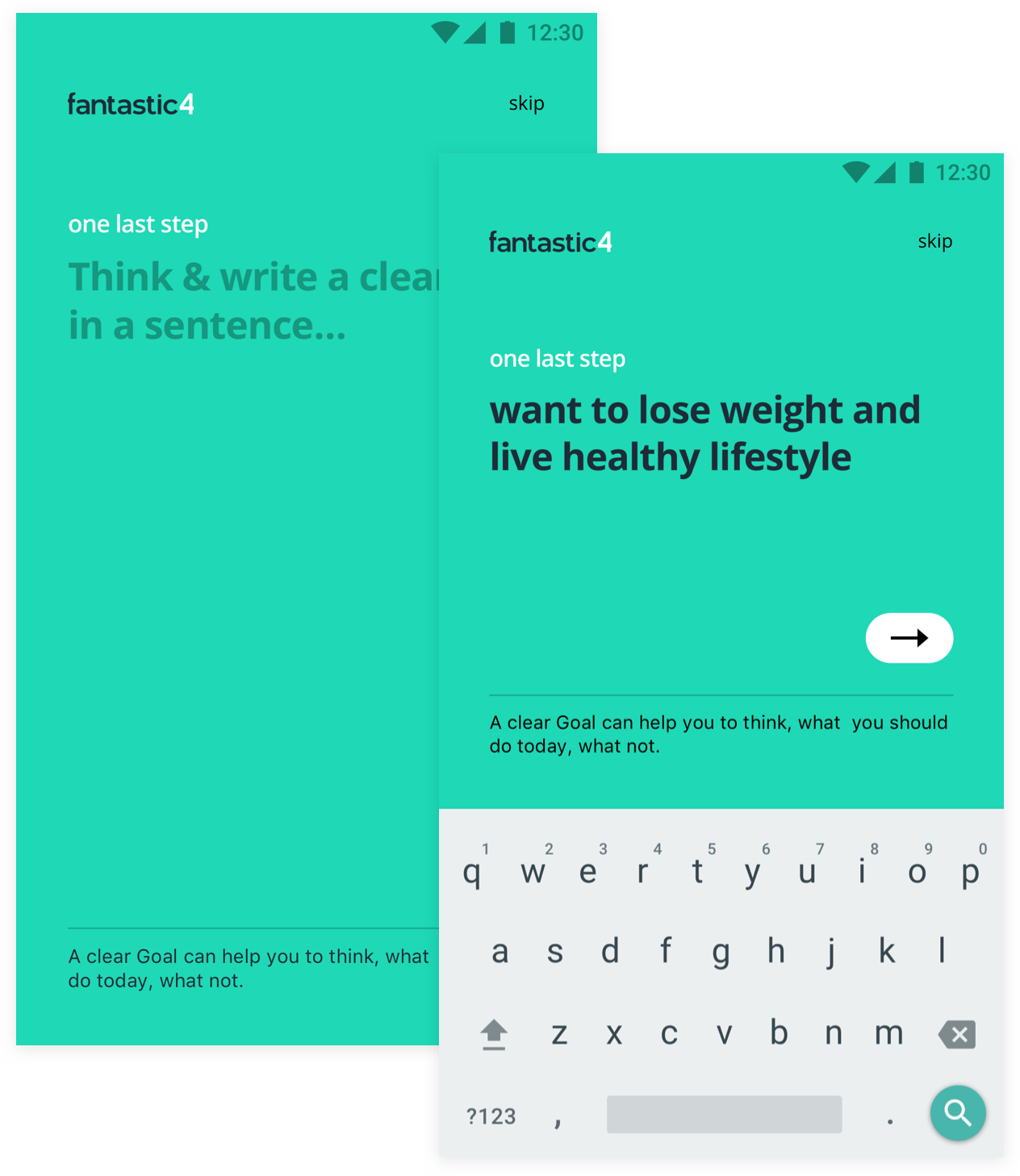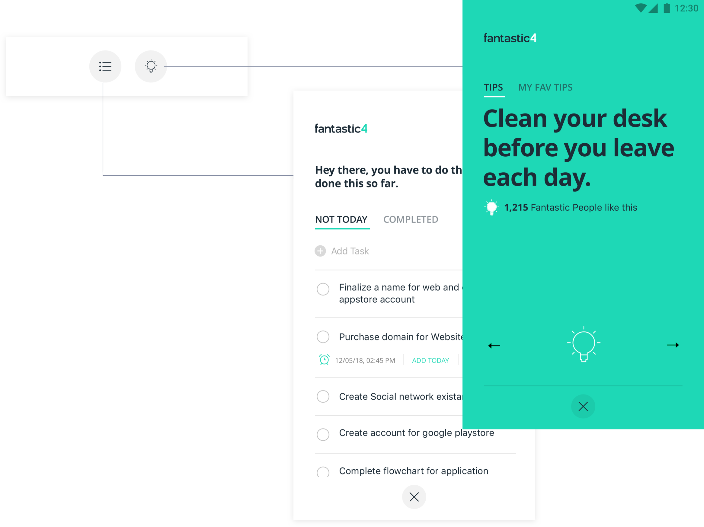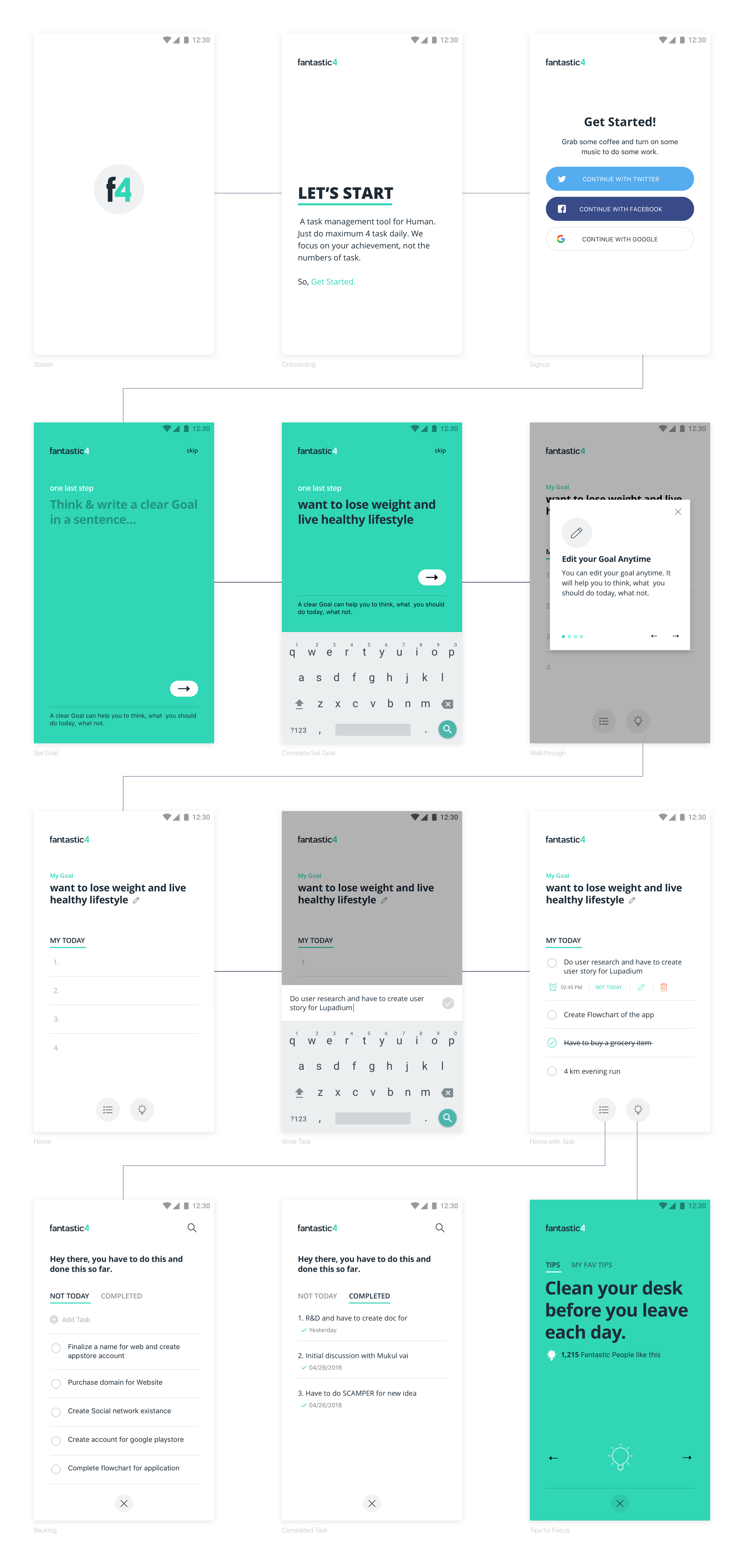 Fastastic4 is a daily task management application. The user is able to set only 4 tasks in a day. Alongside all these, the app will have a tips section, where the user will get tips on focus and do things perfectly.