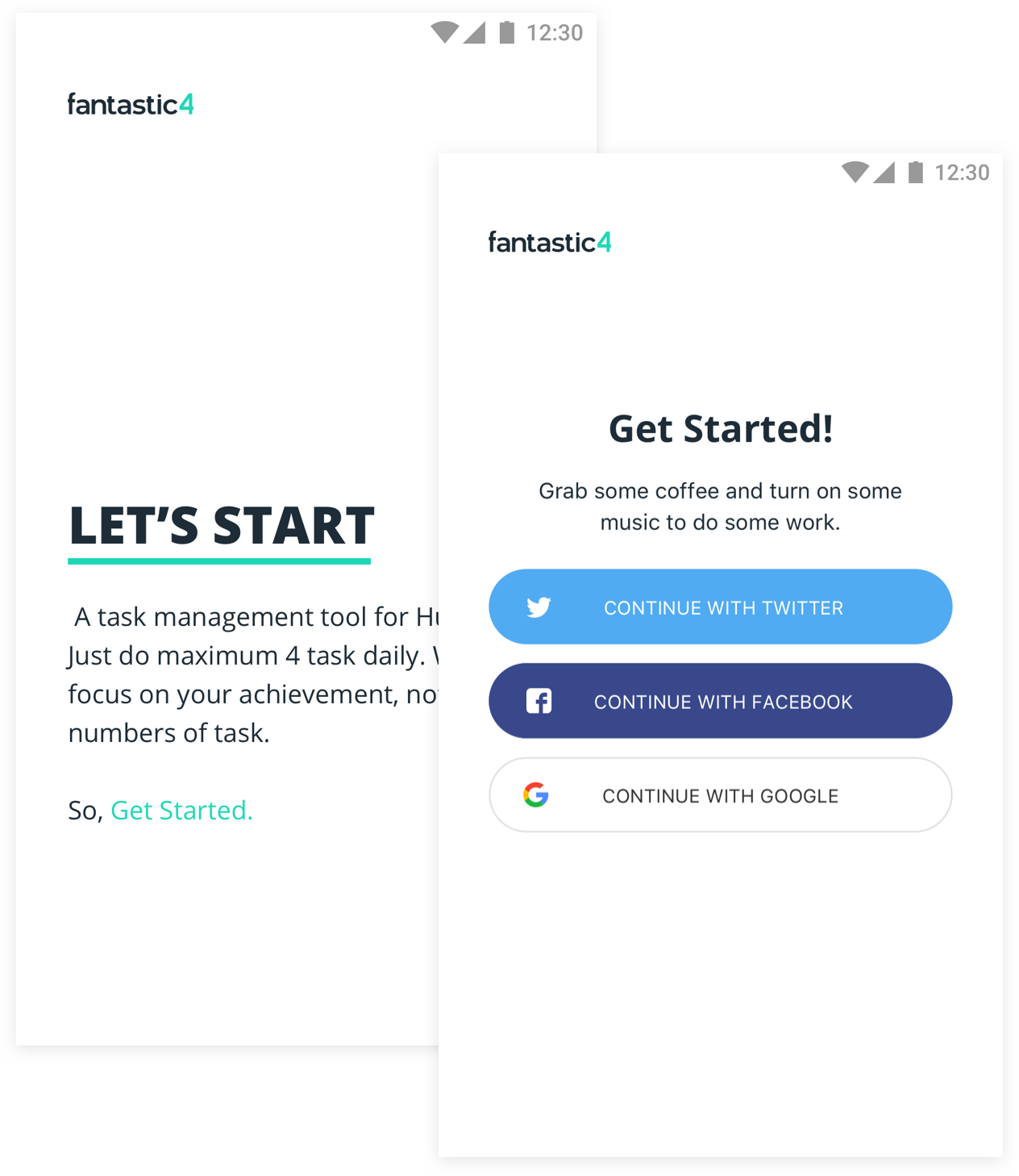A user always uses a task manager app to save their precious time. So it should not take much time to onboard into its system. In Fantastic 4, it's welcoming, straightforward and simple to onboard its user. Just know what it is, where its focus on and signup.