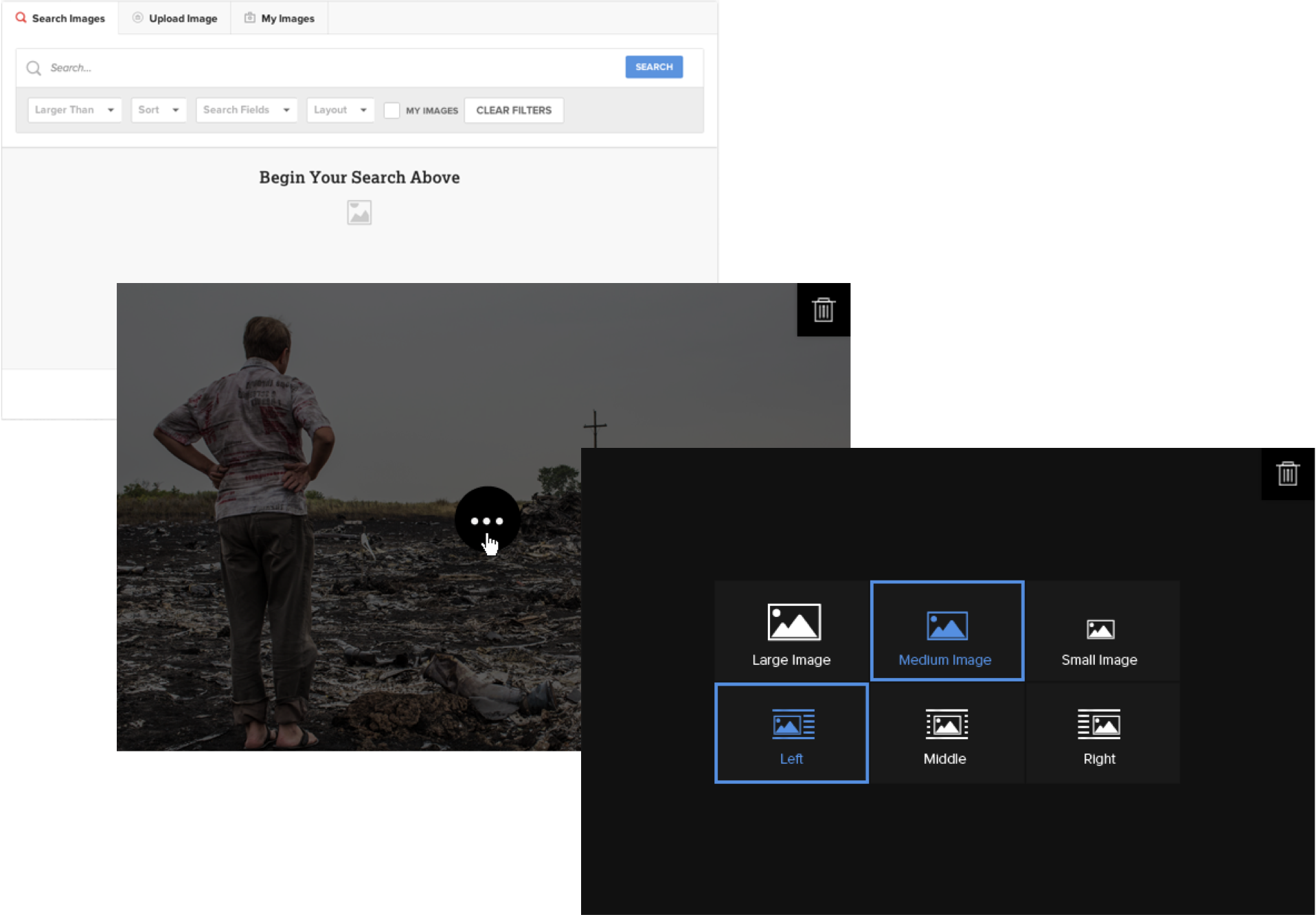 In this application inserting an image is one of the important features of the text-editor. To understand the depth of the article, image plays a very vital role. The process of finding the best image to insert it and modify it is a major challenge for this text-editor. To add, click the image menu and search images from the current asset or into the system. After insert, hover over on the image to show more options.